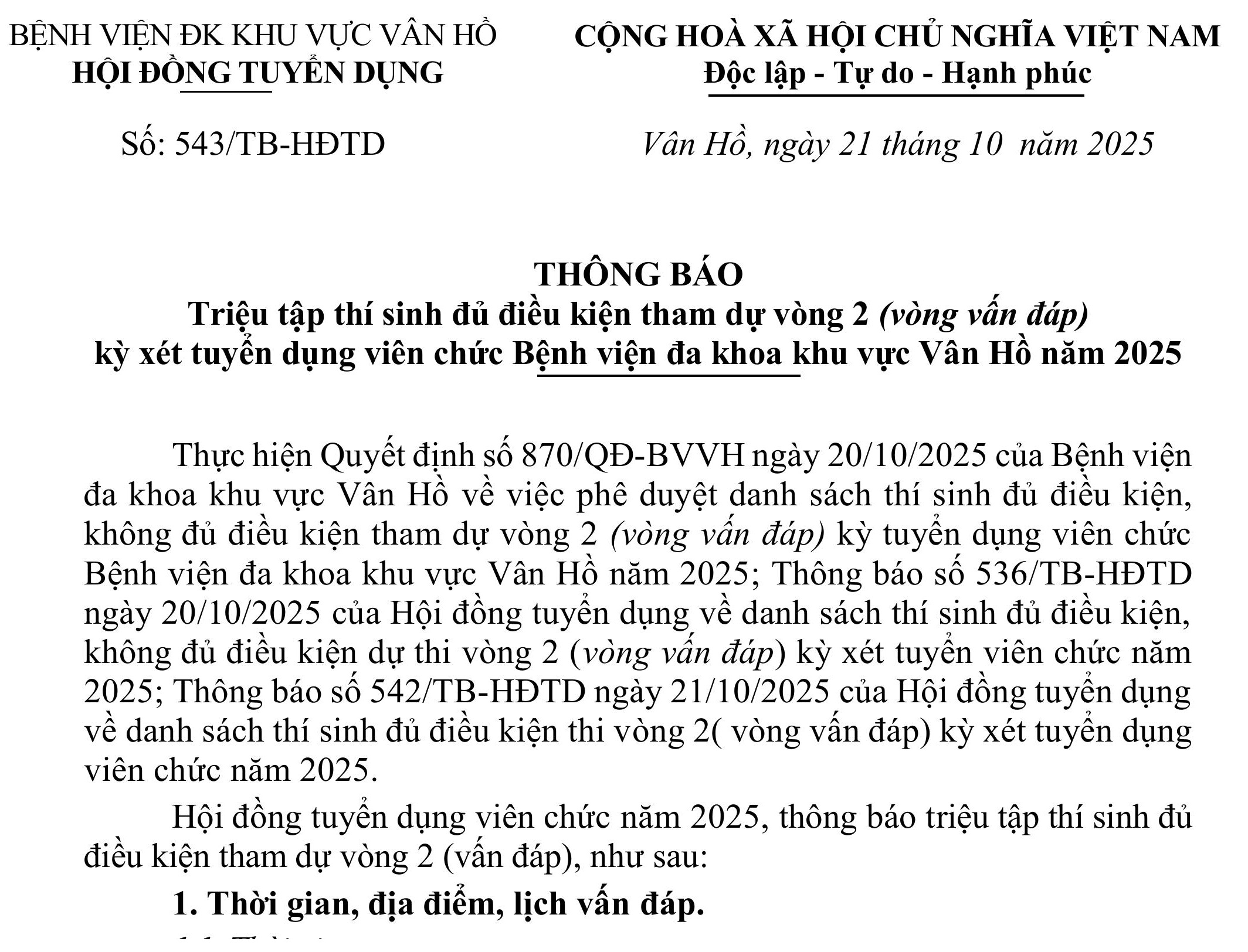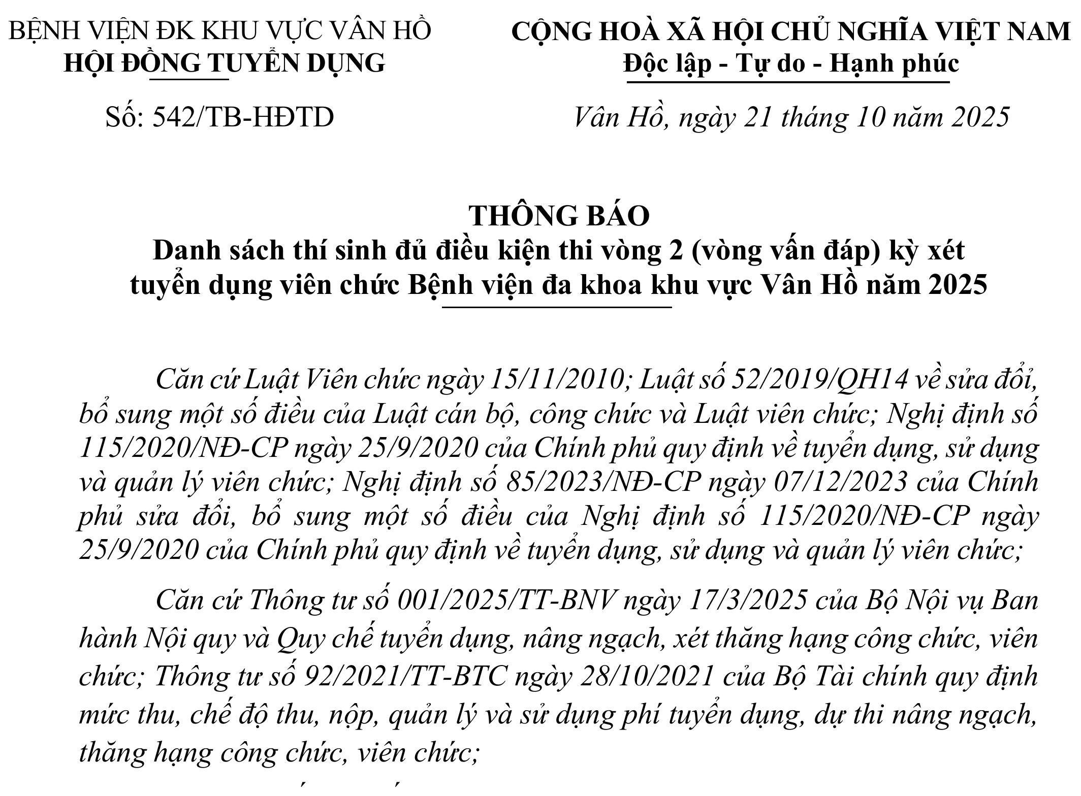 BỆNH VIỆN ĐA KHOA KHU VỰC VÂN HỒ