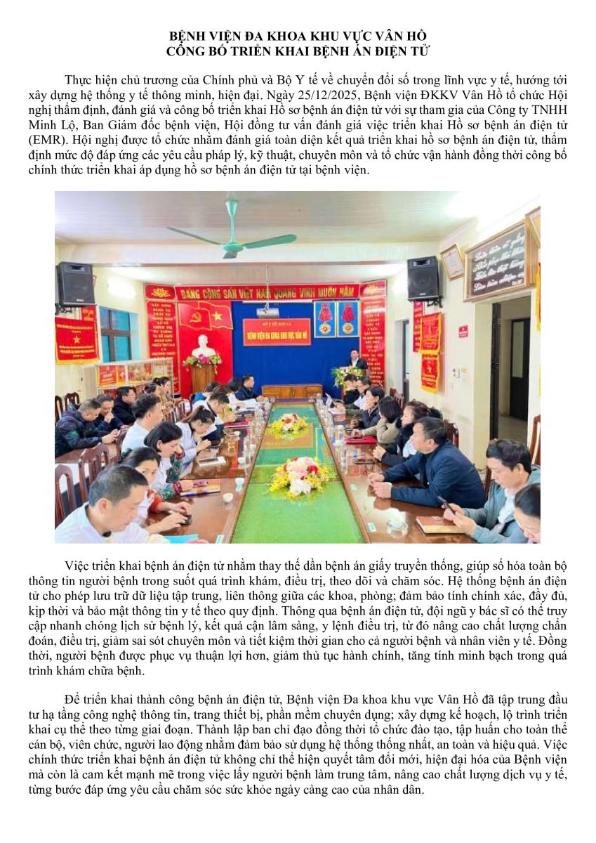 BỆNH VIỆN ĐA KHOA KHU VỰC VÂN HỒ