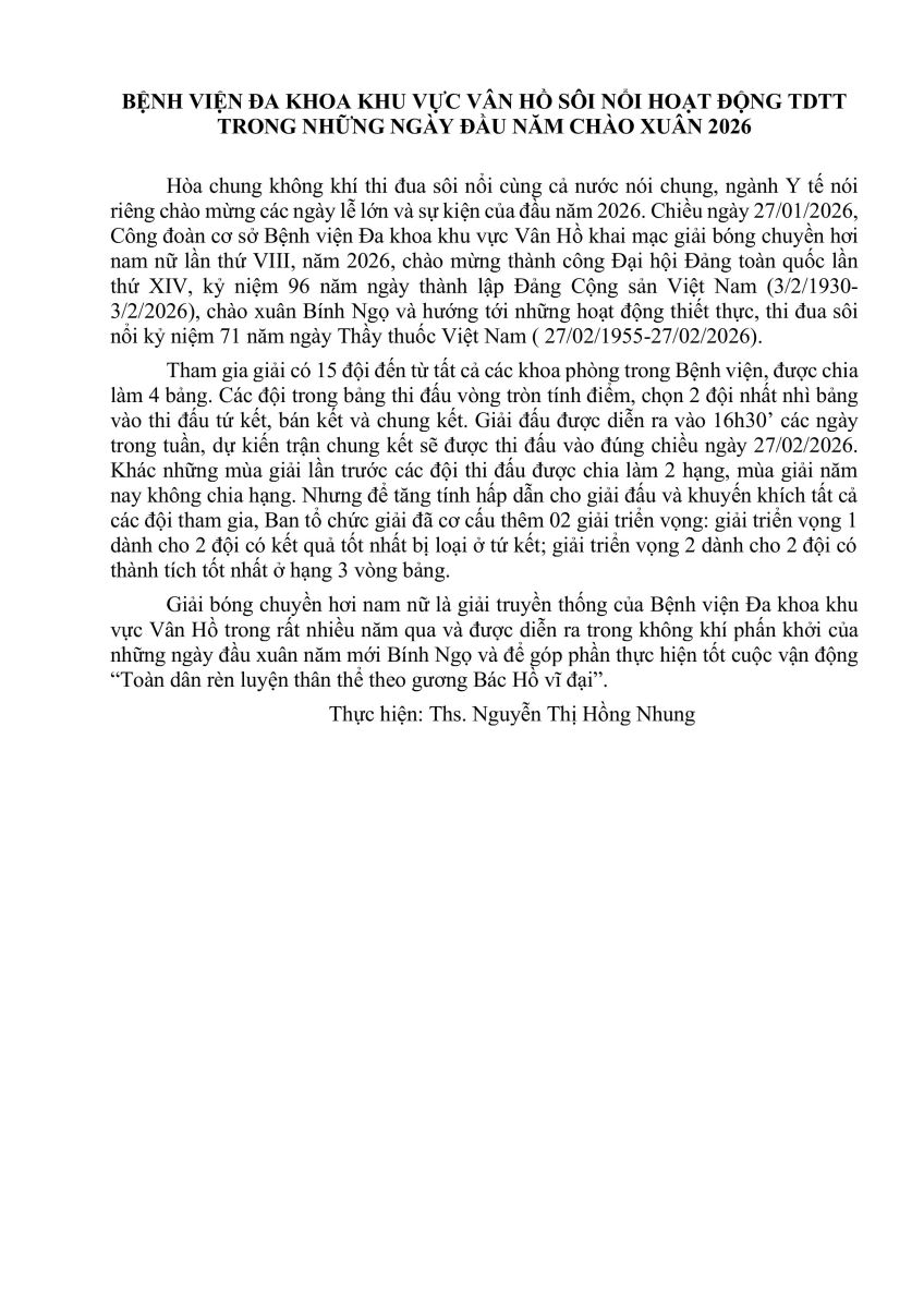 BỆNH VIỆN ĐA KHOA KHU VỰC VÂN HỒ