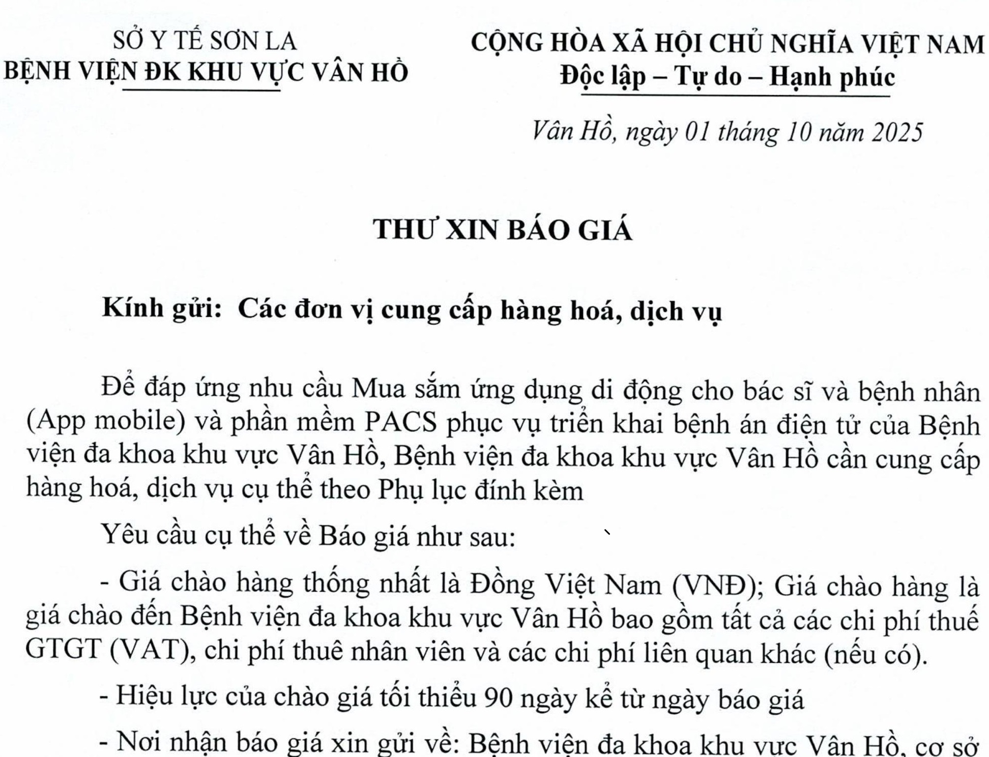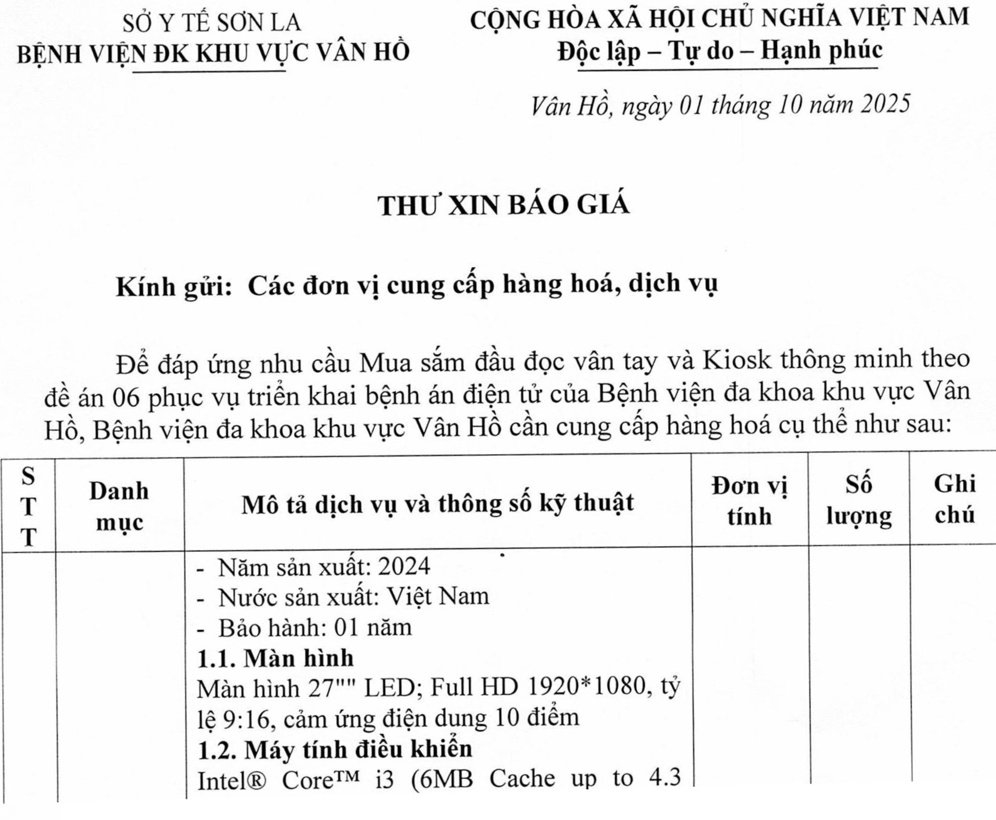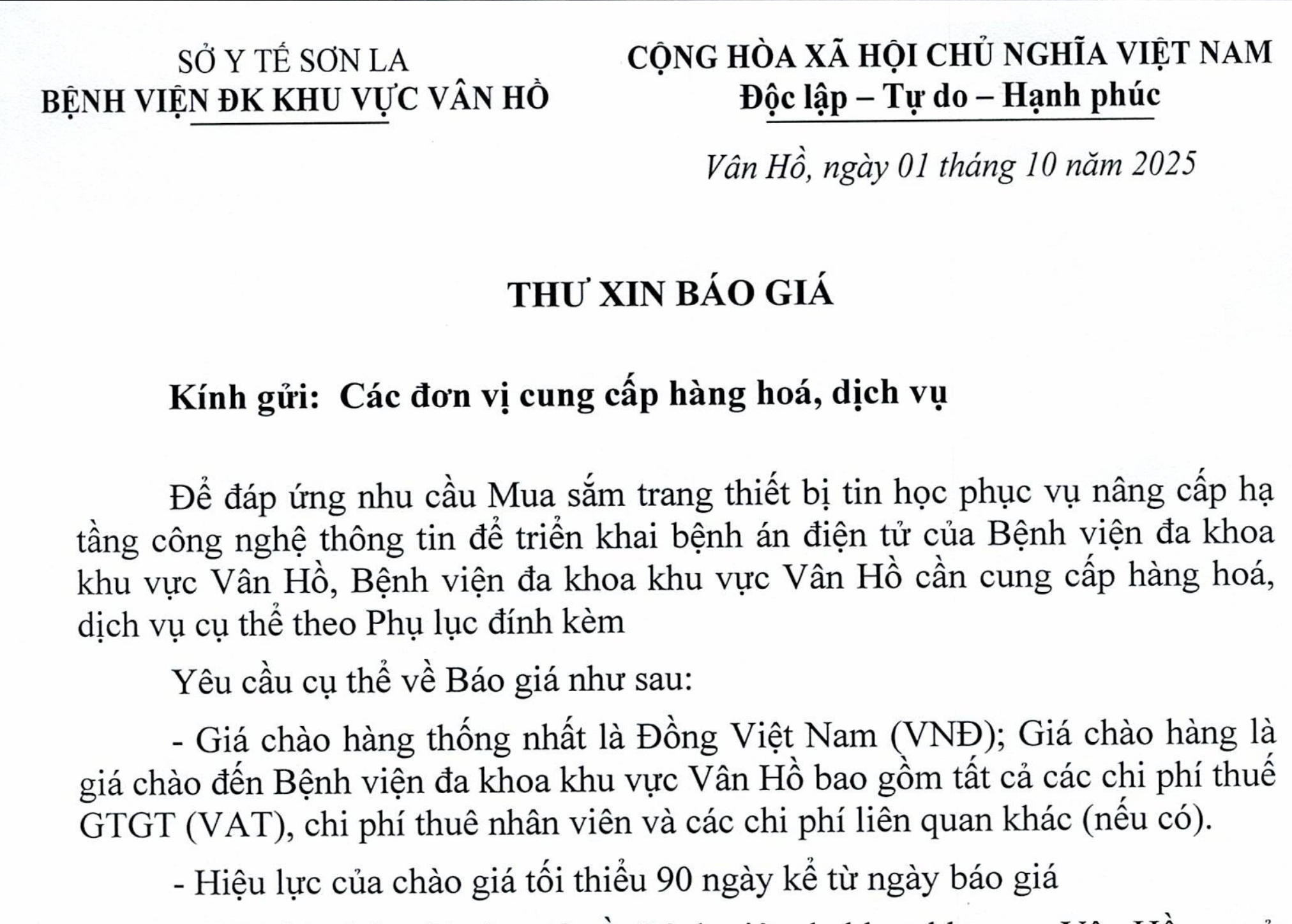 THƯ XIN BÁO GIÁ MUA SẮM THIẾT BỊ TIN HỌC