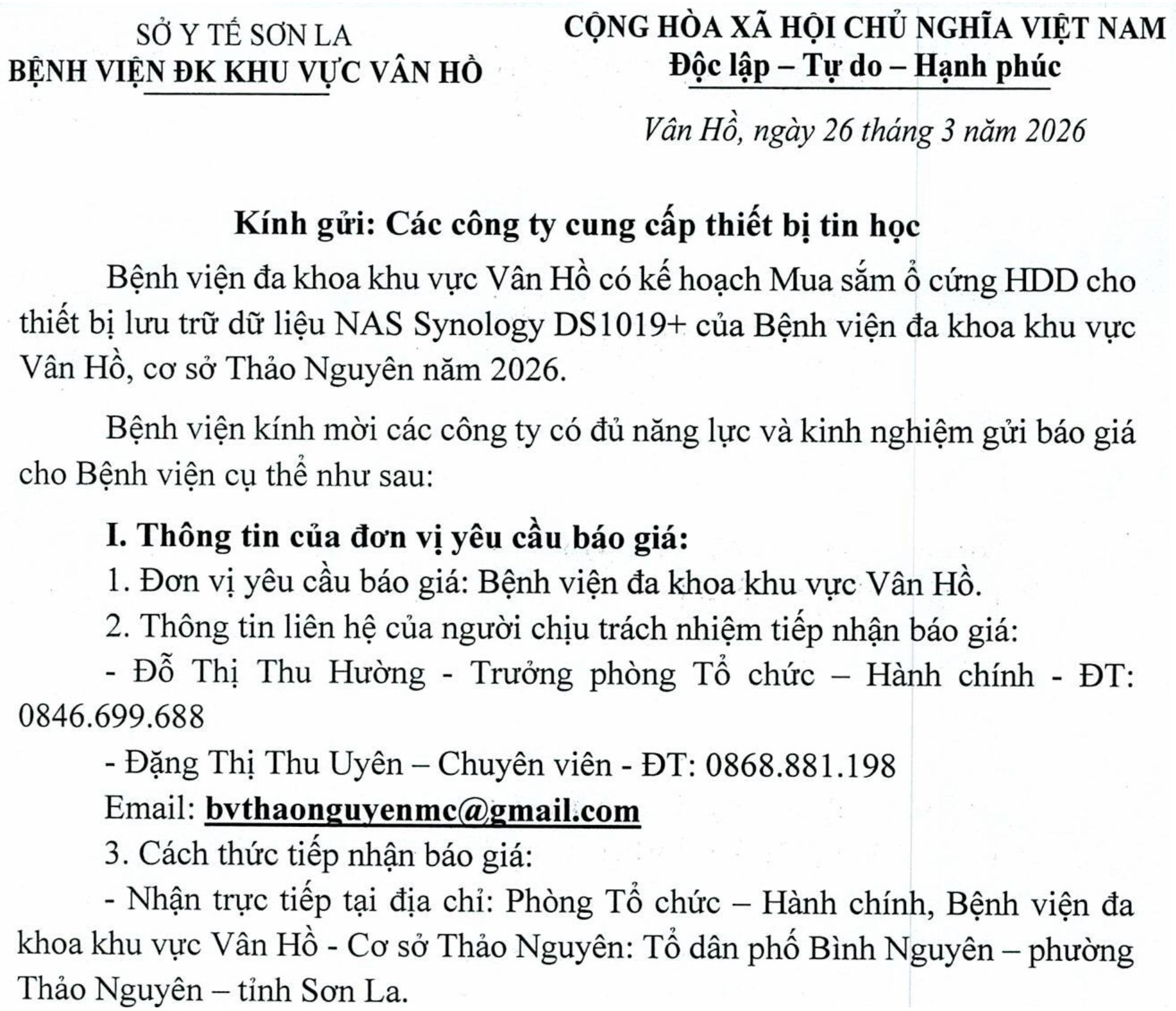Thư Xin Báo Giá Ổ Cứng NAS