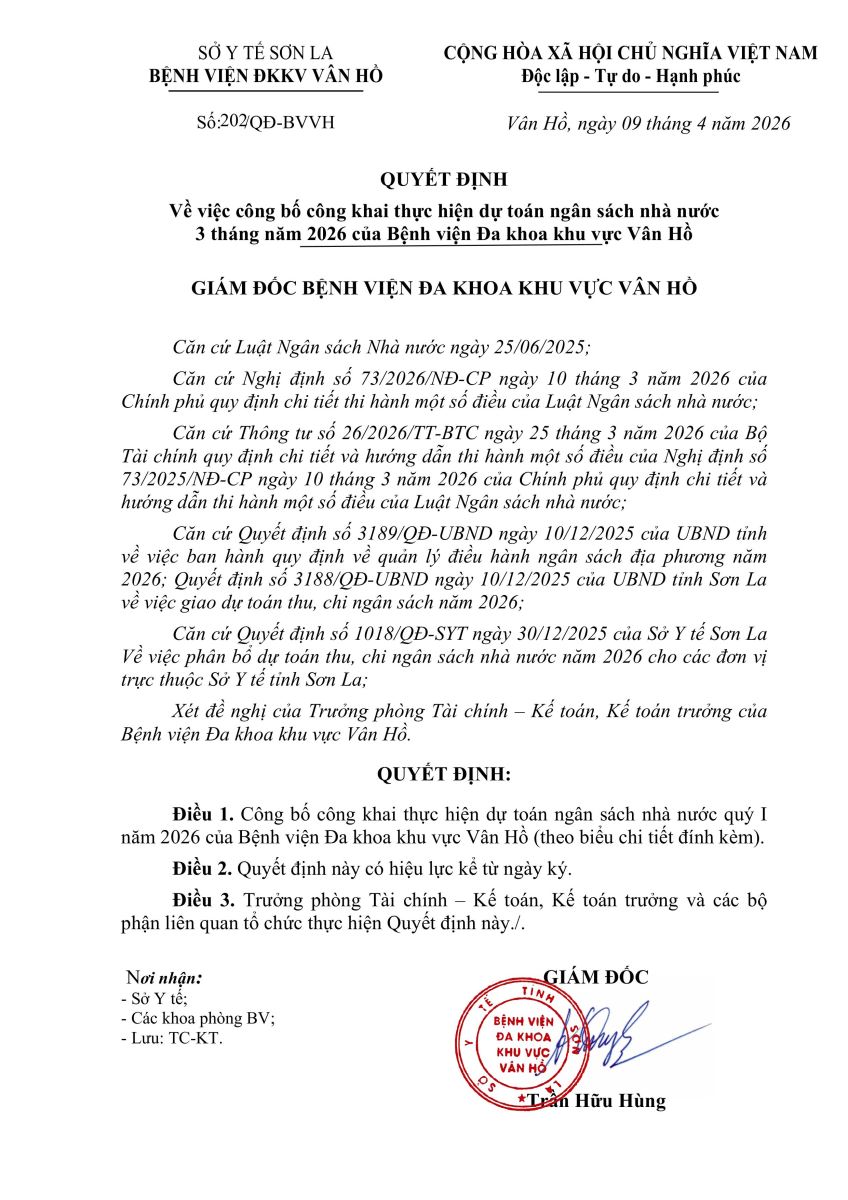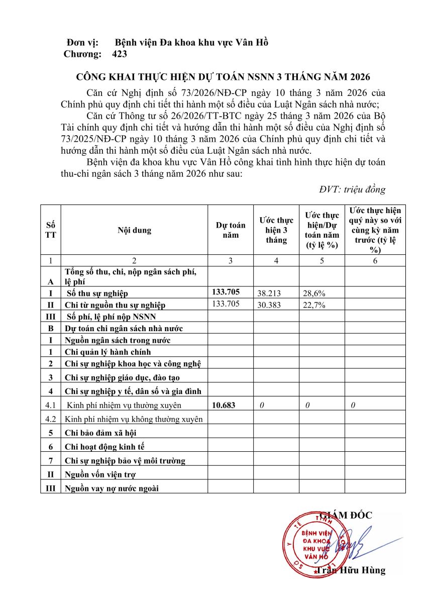 BỆNH VIỆN ĐA KHOA KHU VỰC VÂN HỒ