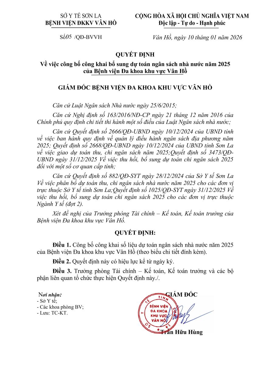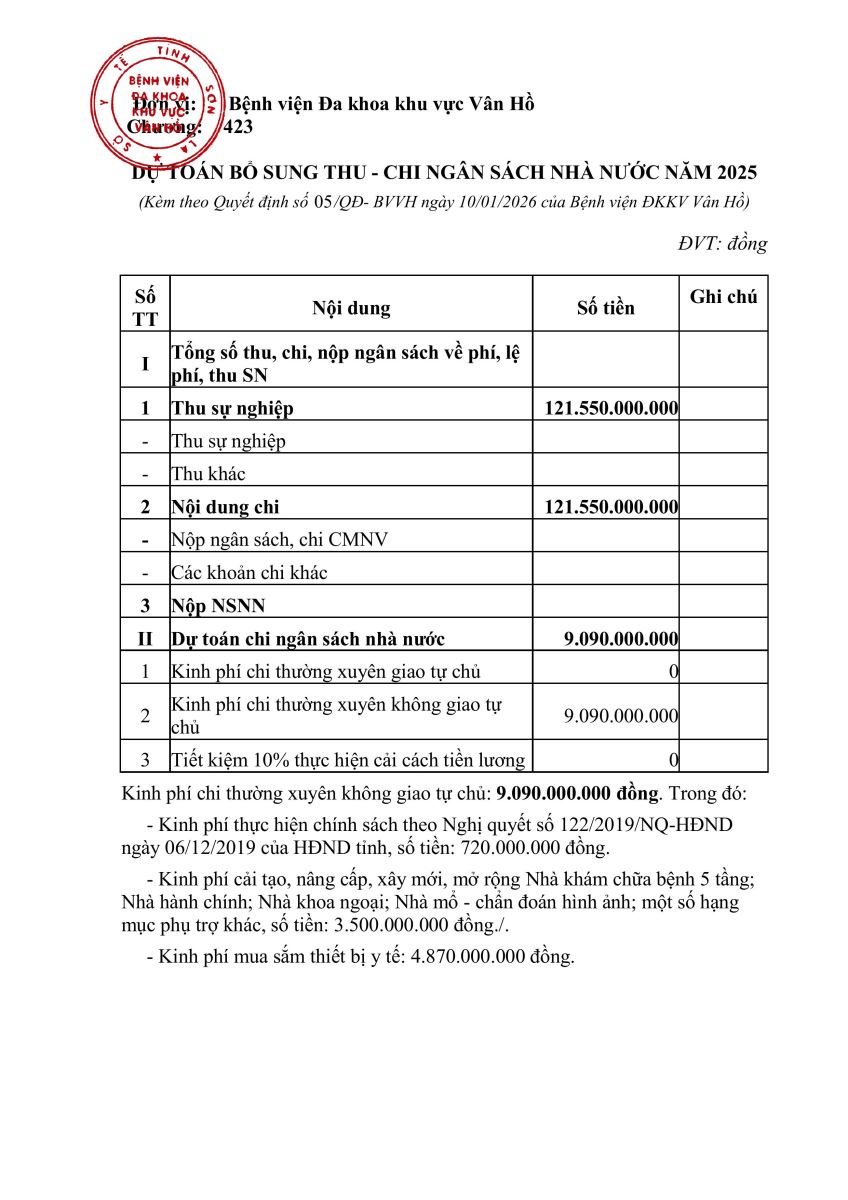 BỆNH VIỆN ĐA KHOA KHU VỰC VÂN HỒ