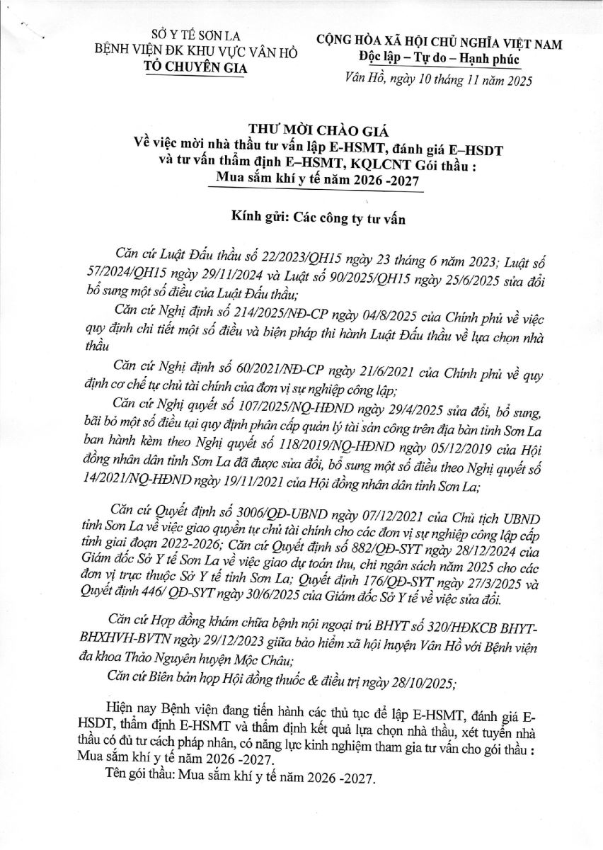 Trang chủ >> Tin trong ngành >> Thư mời chào giá về việc mời nhà thầu tư vấn lập E-HSMT, đánh . . .