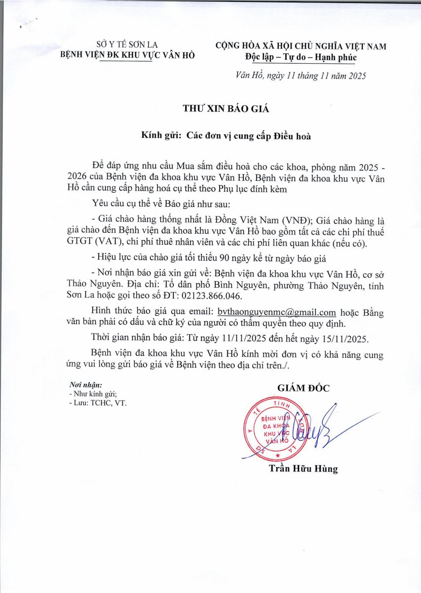 BỆNH VIỆN ĐA KHOA KHU VỰC VÂN HỒ