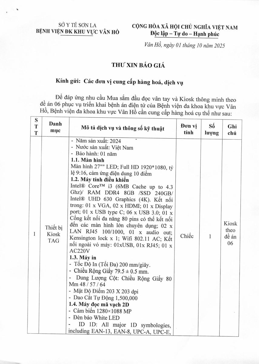 Trang chủ >> Tin trong ngành >> Thư Xin Báo Giá Kiosk Thông Minh