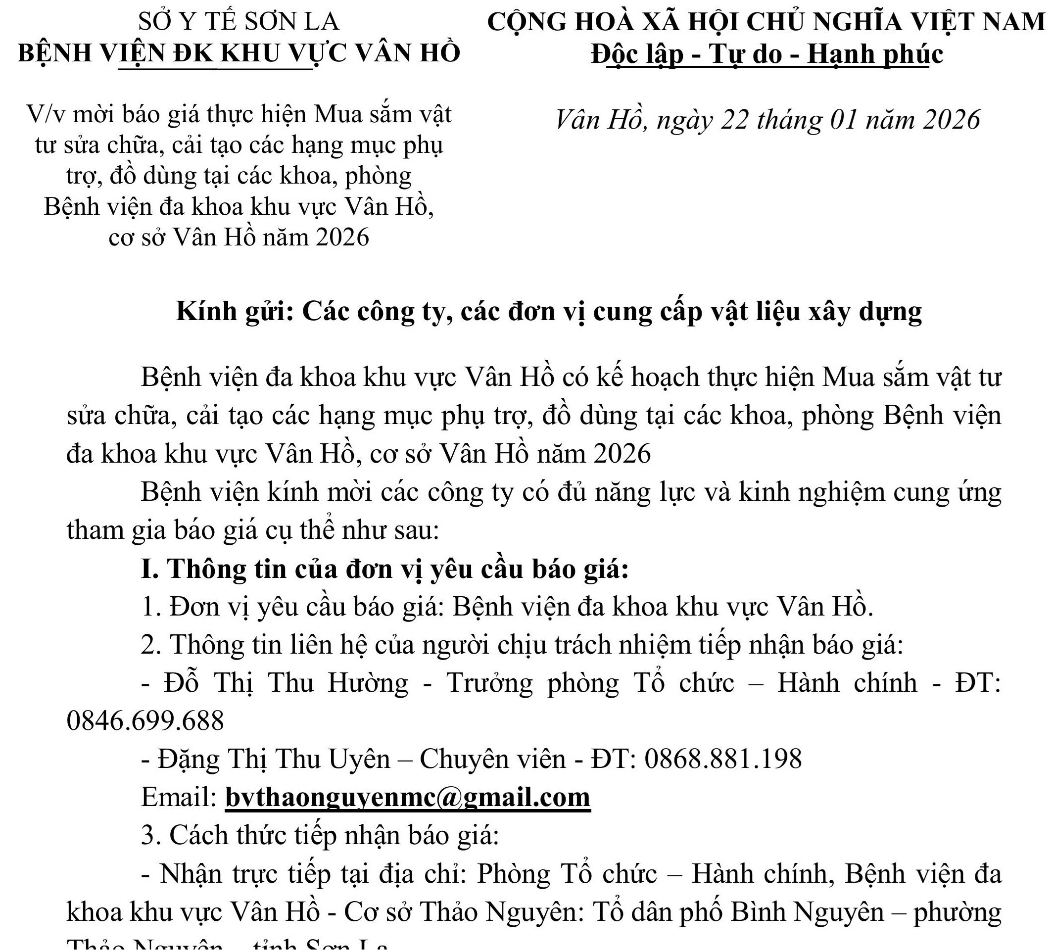 THƯ XIN BÁO GIÁ VẬT TƯ XÂY DỰNG 2026